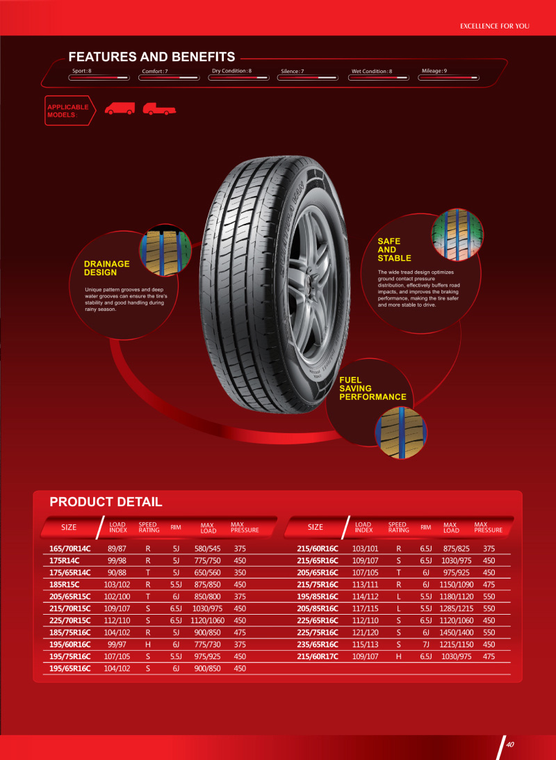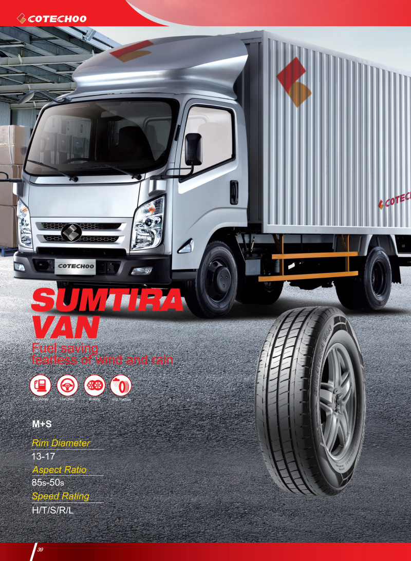 SUMTIRA VAN 輕型商用車(chē)用輪胎,獨特的花紋溝,深排水槽,有較好的排水性和經(jīng)濟燃油性。