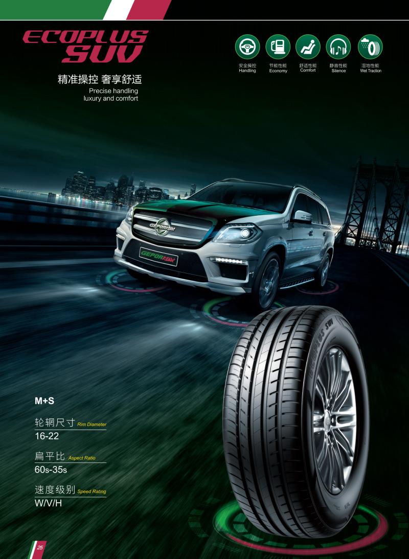 ECOPLUS SUV SUV專(zhuān)用輪胎,靜音胎面,超強抓地設計,精準操控。